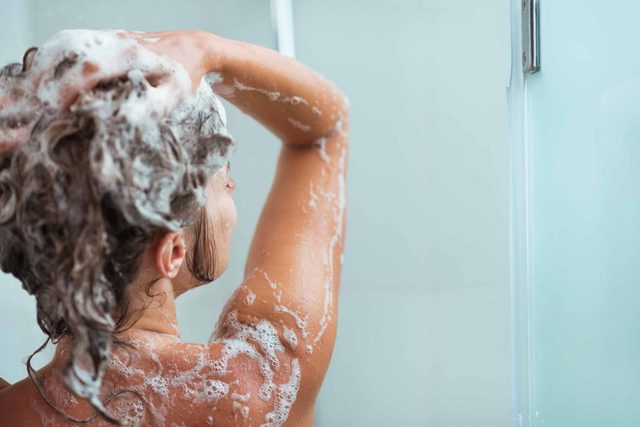 Both Jotzat and Ishmael agree that the answer to how often you should wash your hair depends on your hair type. If you have oily hair, you may need to shampoo your hair every day—or add a dry shampoo to your routine. “It soaks up oil and adds volume to your hair,” Ishmael notes. For normal hair, shampooing two to three times per week is usually sufficient. “There needs to be a balance between cleansing and moisturizing your hair.” Jotzat says. If your hair is dry or damaged, shampooing once a week might be your best bet to help you strike that delicate balance with your hair. Find out the truth behind these surprising hair myths.