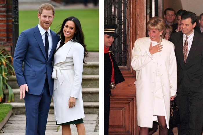 Everyone will remember the famous white coat that Meghan Markle wore when she and Prince Harry announced their engagement. Back in 1996, Princess Diana sported a similar piece. Don’t forget to check out these times that Kate Middleton and Princess Diana basically wore the same outfit, too.