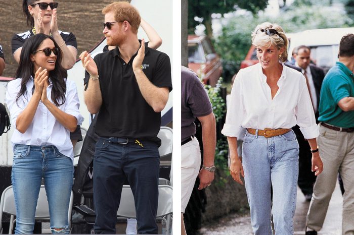 It’s rare that you see the royals out in jeans, but both Meghan and Diana have been photographed in jeans and a collared white button-down. These are the dress code rules everyone in the royal family must follow.