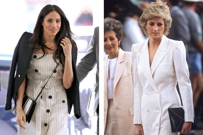 Both Meghan and Diana sported the stripe look at two different occasions. Meghan Markle wore a striped button-down dress at the Commonwealth Youth Forum in April. Princess Diana wore a similar striped dress on a tour in Australia in 1988. Read about the most bizarre perks of the royal family.