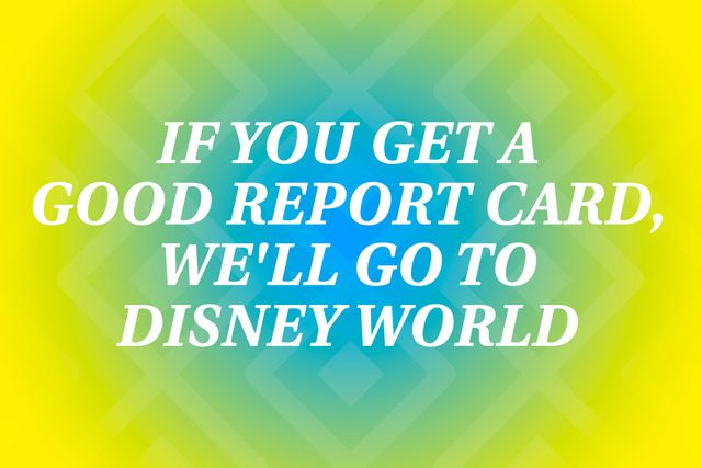 Unrealistic promises can be just as damaging as negative threats. A parent might feel good at the moment that he or she is able to motivate a child to meet a goal, but any feelings of pride will be diminished if they’re not able to make good on their promise. Unless you have every intention of keeping your word, no matter how expensive, outlandish, or over the top, don’t make it in the first place. Try to encourage your child with simple rewards that aren’t of a material nature, such as time spent together, the personal satisfaction you get from reaching a goal, and words of praise and affirmation. Some parents motivate kids by posting their triumphs on a “Wall of Fame.”